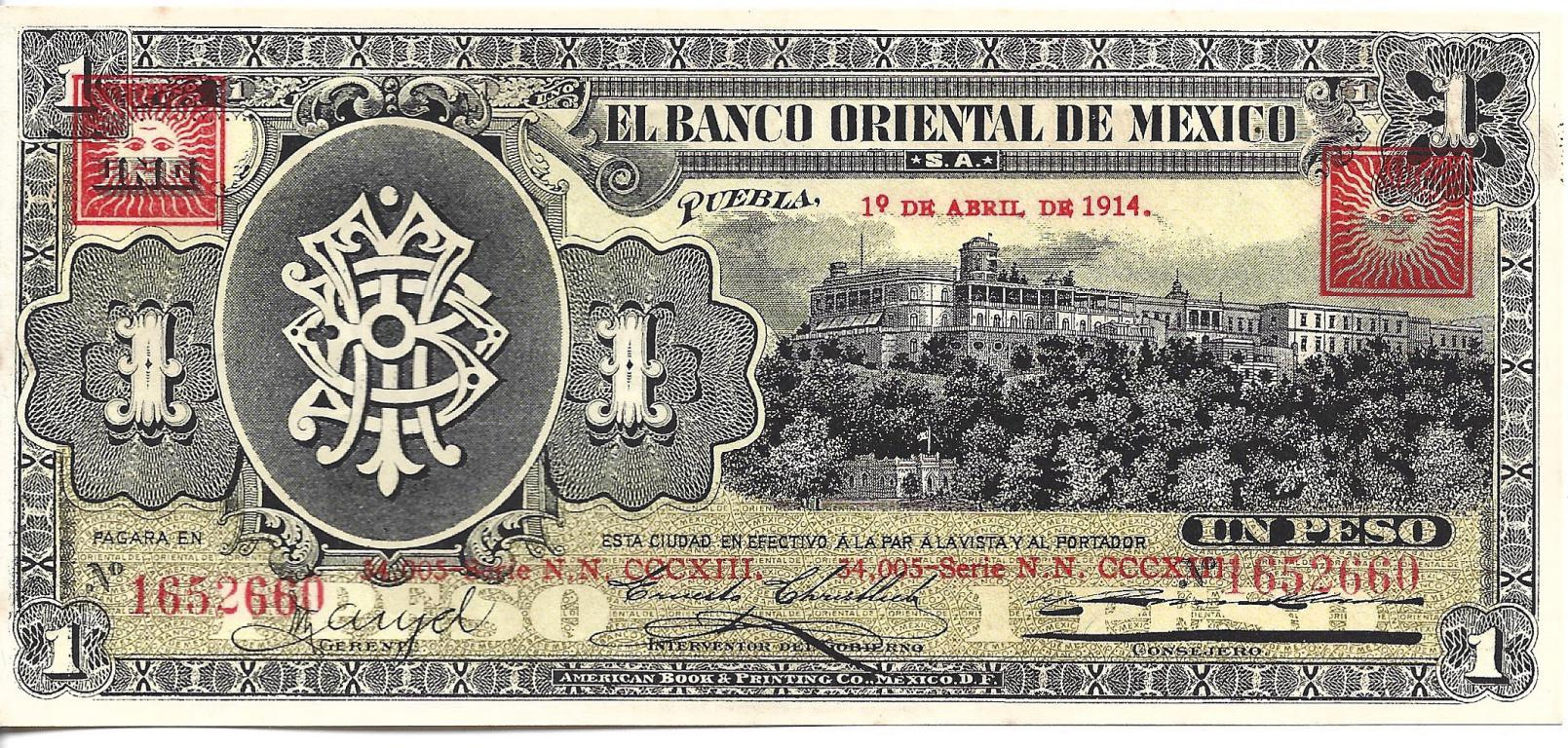1 PESO BANCO ORIENTAL DE MEXICO (1914)