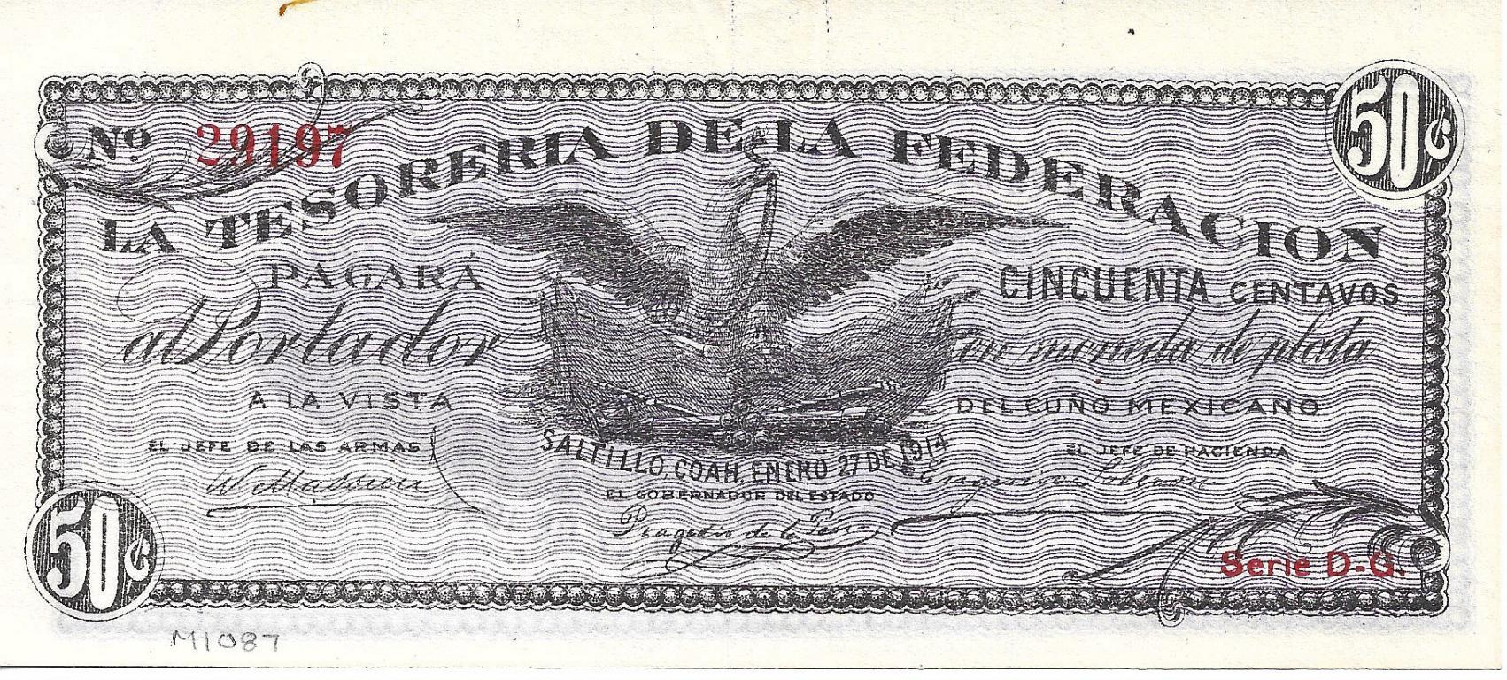 50 CENTAVOS TESORERIA DE LA FEDERACION (1914)
