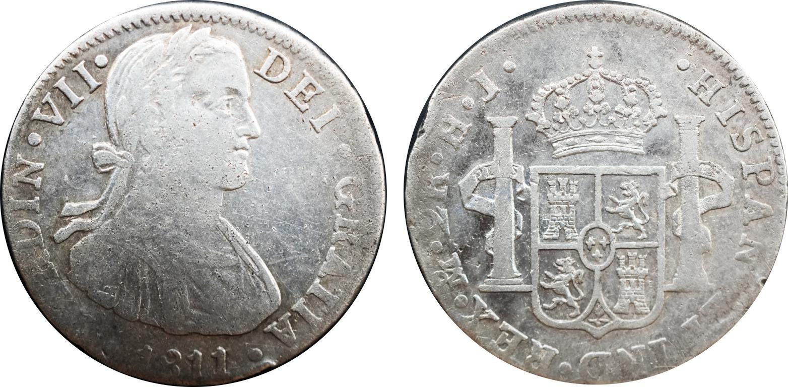 DESCRIPCIÓN ADICIONAL: posible sobre fecha 1811/0, ensayador HJ/TH, muy escasa