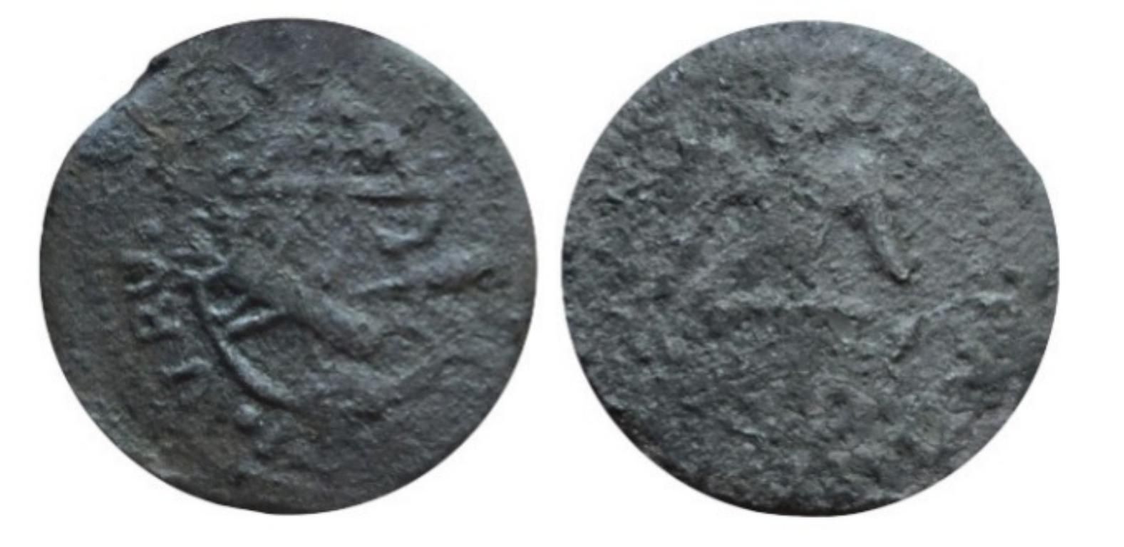 DESCRIPCIÓN ADICIONAL: cobre, “URU” que indican las iniciales de Uruapan, en el actual Estado de Michoacán, considerada históricamente una de las primeras monedas insurgentes ordenadas para acuñarse por el Supremo (So.) Gobierno en apoyo a la causa insurgente después de celebrarse el 31 se septiembre de 1813 el primer congreso de Anáhuac en Chilpancingo, en el actual Estado de Guerrero, muy escasa
