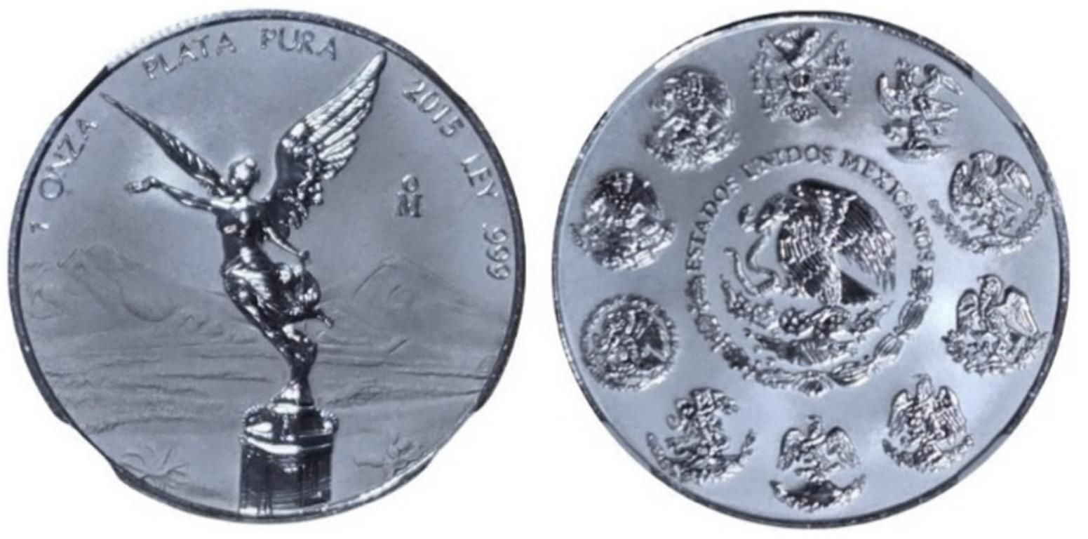 DESCRIPCIÓN ADICIONAL: Set de tres piezas, del 90 aniversario Banco de México, 2015, onzas Libertad terminado satín, espejo y mate-brillo, certificadas por NGC grados 68 y 69, con estuche de madera y certificado (número 004); emisión de solo 1,000 piezas, para el ejemplar mate-brillo es el primer año de acuñación en este estilo, muy escaso y en alta demanda